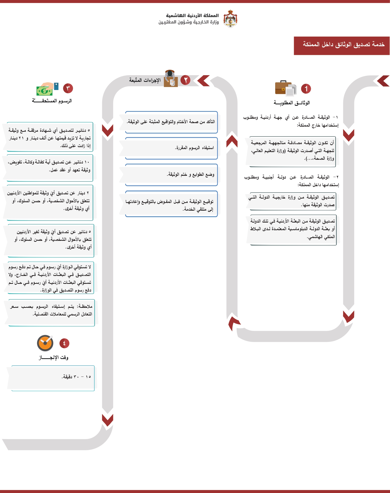 يقوم الموظف بتدقيق الوثيقة و التأكد من الأختام و تحديد الرسوم.